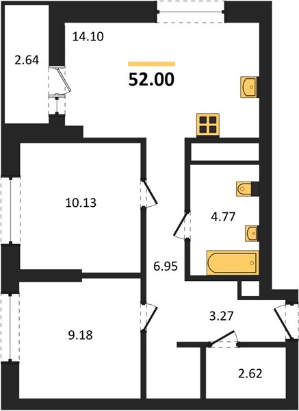 Квартира: 2 к 52,00 кв.м., 13 этаж в комплексе ОК: Премиум, 2 очередь, корп.1, сдача: 2кв. , этажей: 23, адрес Екатеринбург г., Учителей ул., д. 33, Застройщик: TEN девелопмент.