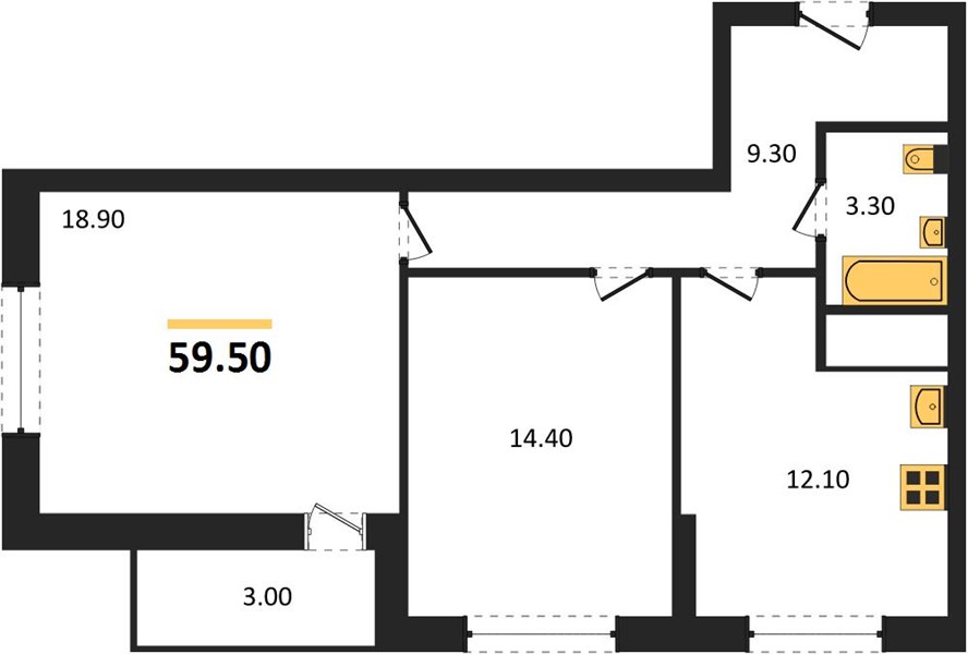 | Общая площадь: | 59.50 м2 |