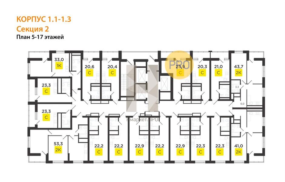 Студия: 23,30 кв.м., 16 этаж в комплексе Основинские кварталы, 1 очередь, корп.1.1-1.3, сдача: 1кв. , этажей: 25, адрес Екатеринбург г., Учителей ул., д. 33, Застройщик: TEN девелопмент.