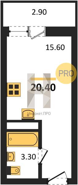 Студия: 20,40 кв.м., 24 этаж в комплексе Основинские кварталы, 1 очередь, корп.1.1-1.3, сдача: 1кв. , этажей: 25, адрес Екатеринбург г., Учителей ул., д. 33, Застройщик: TEN девелопмент.