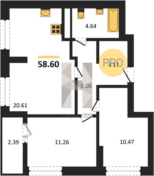 | Общая площадь: | 58.60 м2 |