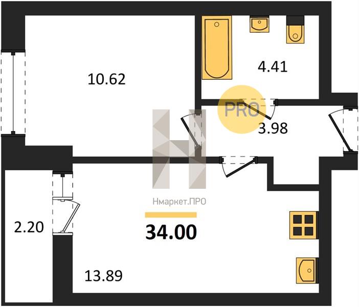 | Общая площадь: | 34.00 м2 |