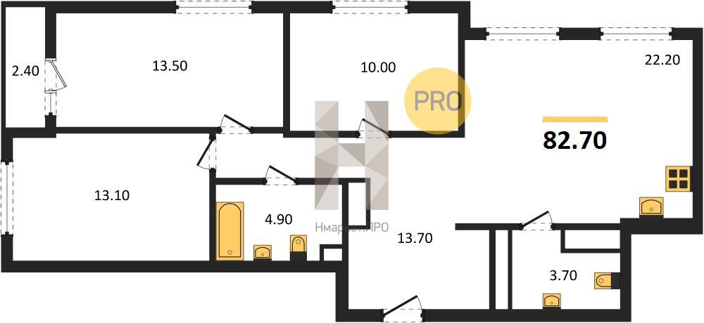 Квартира: 3 к 82,70 кв.м., 9 этаж в комплексе ОК: Премиум, 2 очередь, корп.2, сдача: 2кв. , этажей: 31, адрес Екатеринбург г., Учителей ул., д. 33, Застройщик: TEN девелопмент.