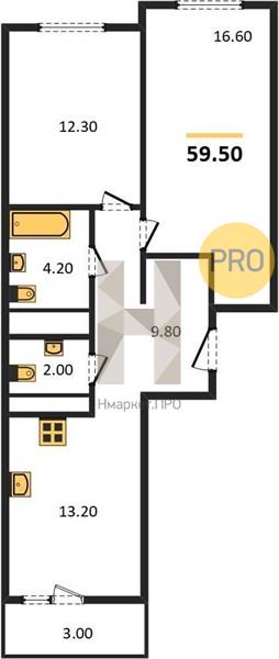 Квартира: 2 к 59,50 кв.м., 18 этаж в комплексе Основинские кварталы, 1 очередь, корп.3.1-3.4, сдача: 1кв. , этажей: 19, адрес Екатеринбург г., Учителей ул., д. 33, Застройщик: TEN девелопмент.