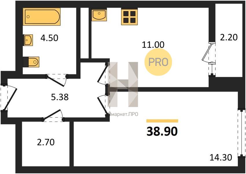 | Общая площадь: | 38.90 м2 |