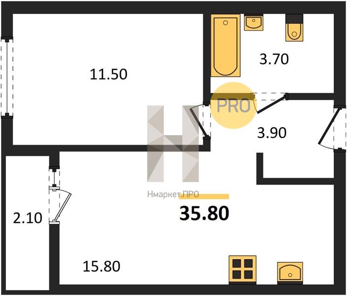 | Общая площадь: | 35.80 м2 |