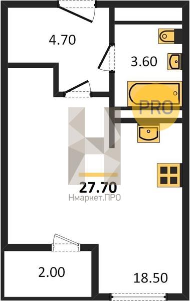 Купить студию, 27.70 м2 № 5774053