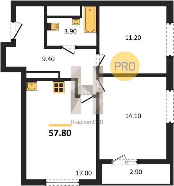 | Общая площадь: | 57.80 м2 |