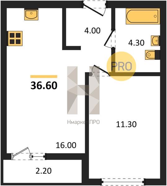 Квартира: 1 к 36,60 кв.м., 2 этаж в комплексе ОК: Премиум, 2 очередь, корп.4, сдача: 2кв. , этажей: 31, адрес Екатеринбург г., Учителей ул., д. 33, Застройщик: TEN девелопмент.