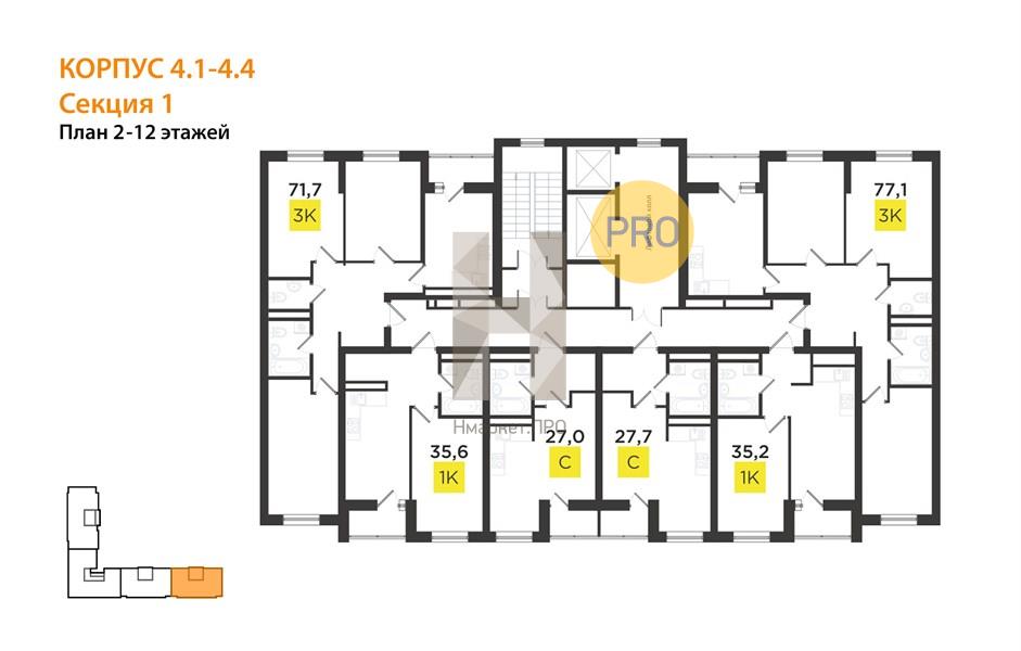 В составе ЖК различные форматы жилья – от экономичных и функциональных студий до спокойных и вместительных квартир комфорт-класса для семей с детьми.