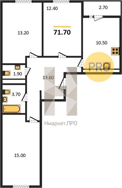 | Общая площадь: | 71.70 м2 |
