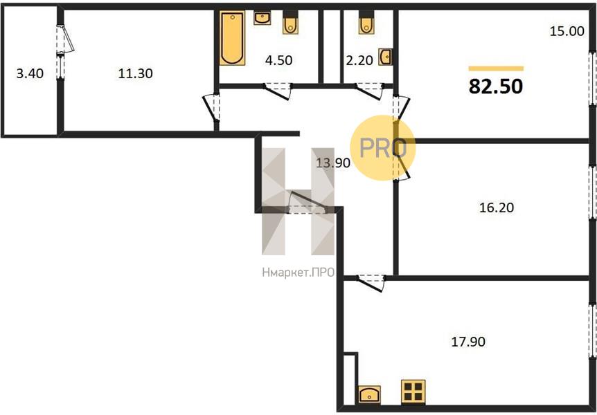 | Общая площадь: | 82.50 м2 |