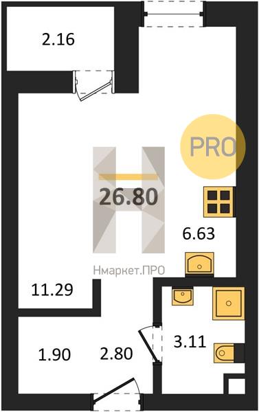 | Общая площадь: | 26.80 м2 |