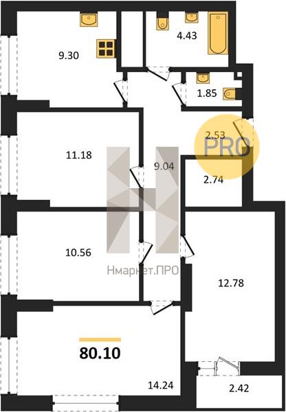 Квартира: 4 к 80,10 кв.м., 12 этаж в комплексе ОК: Премиум, 2 очередь, корп.5, сдача: 2кв. , этажей: 21, адрес Екатеринбург г., Учителей ул., д. 33, Застройщик: TEN девелопмент.