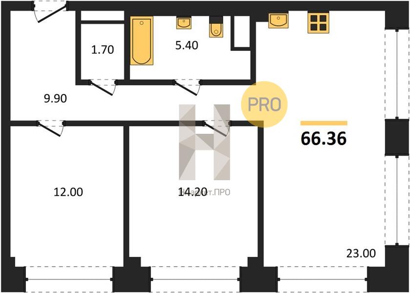 | Общая площадь: | 66.36 м2 |