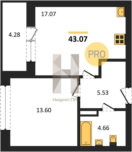 | Общая площадь: | 43.07 м2 |