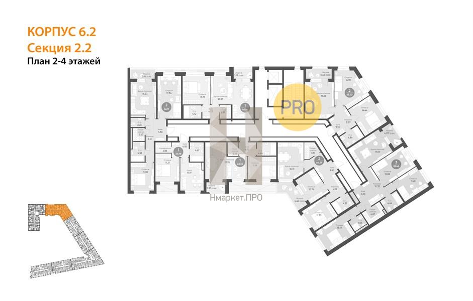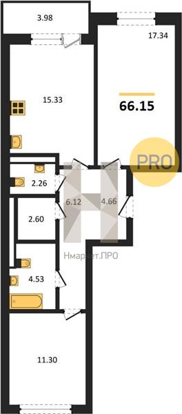 Квартира: 2 к 66,15 кв.м., 2 этаж в комплексе Солнечный, 4 очередь, корп.6.2, сдача: 1кв. , этажей: 16, адрес Екатеринбург г., Вдохновения бул., , Застройщик: ГК ЭТАЛОН.