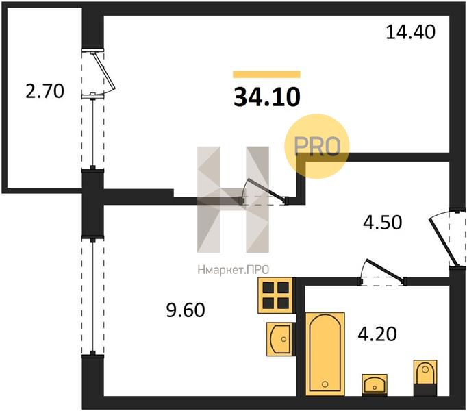 | Общая площадь: | 34.10 м2 |