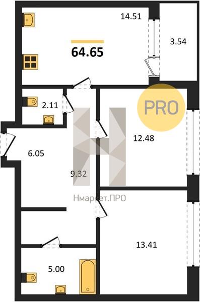 | Общая площадь: | 64.65 м2 |