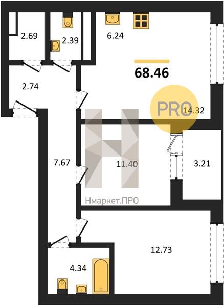 | Общая площадь: | 68.46 м2 |