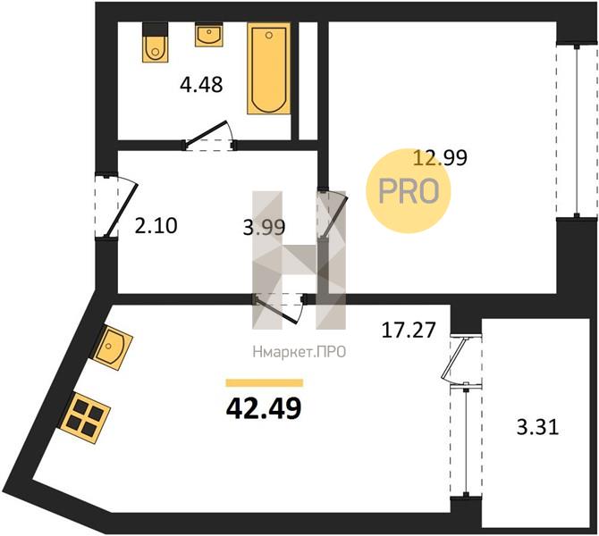 | Общая площадь: | 42.49 м2 |