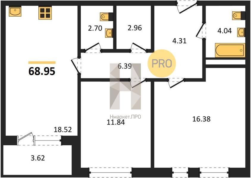 | Общая площадь: | 68.95 м2 |