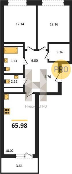 | Общая площадь: | 65.98 м2 |