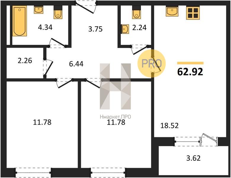 Квартира: 2 к 62,92 кв.м., 12 этаж в комплексе Солнечный, 4 очередь, корп.6.2, сдача: 1кв. , этажей: 16, адрес Екатеринбург г., Вдохновения бул., , Застройщик: ГК ЭТАЛОН.
