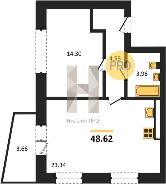 Квартира: 1 к 48,62 кв.м., 8 этаж в комплексе Солнечный, 4 очередь, корп.6.2, сдача: 1кв. , этажей: 16, адрес Екатеринбург г., Вдохновения бул., , Застройщик: ГК ЭТАЛОН.