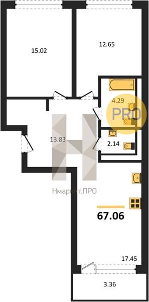 Квартира: 2 к 67,00 кв.м., 3 этаж в комплексе Солнечный, 3 очередь, корп.5.4 (1 корпус), сдача: 3кв. , этажей: 16, адрес Екатеринбург г., Вдохновения бул., д. 4, Застройщик: ГК ЭТАЛОН.