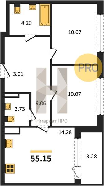 Квартира: 2 к 54,90 кв.м., 12 этаж в комплексе Солнечный, 3 очередь, корп.5.4 (1 корпус), сдача: 3кв. , этажей: 16, адрес Екатеринбург г., Вдохновения бул., д. 4, Застройщик: ГК ЭТАЛОН.