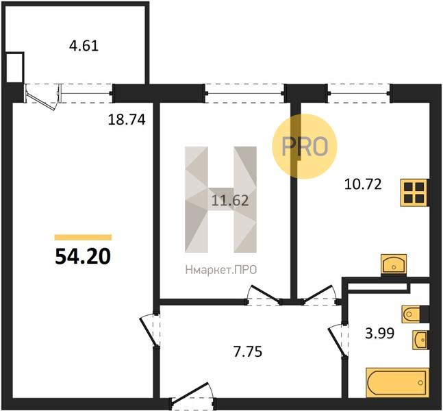 | Общая площадь: | 54.20 м2 |