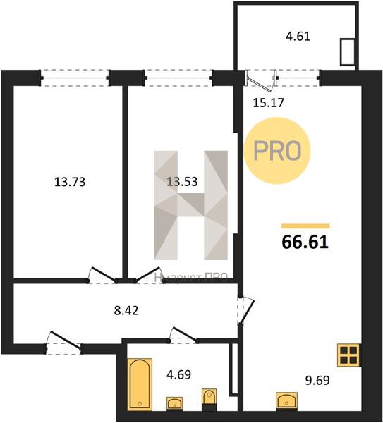 | Общая площадь: | 66.61 м2 |