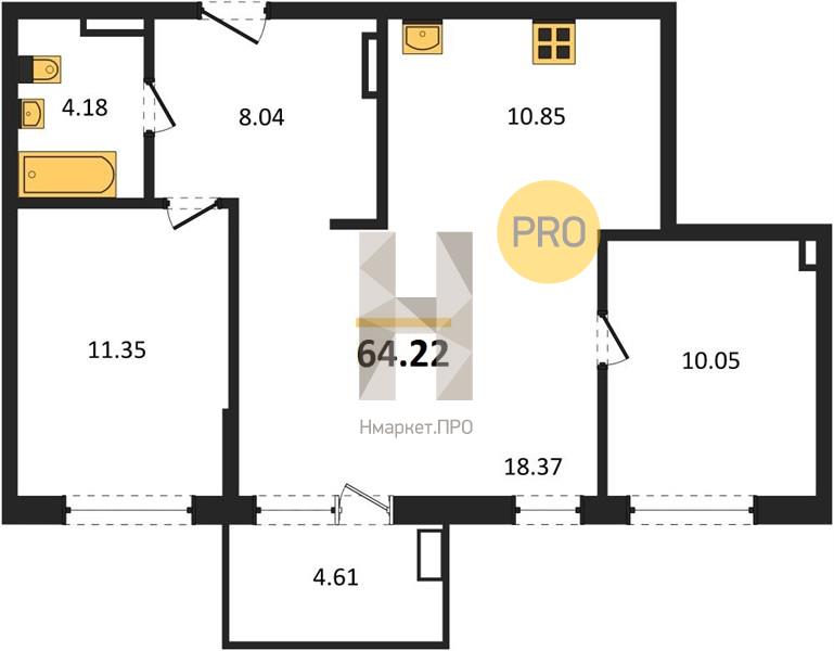 Квартира: 2 к 64,22 кв.м., 4 этаж в комплексе Балтым-Парк, 2 очередь, корп.19, сдача: 2кв. , этажей: 5, адрес Верхняя Пышма г., , Застройщик: ГК ЭТАЛОН.