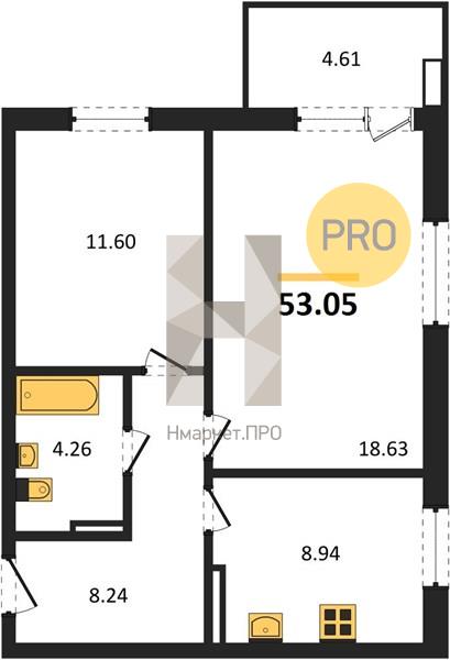 | Общая площадь: | 53.05 м2 |
