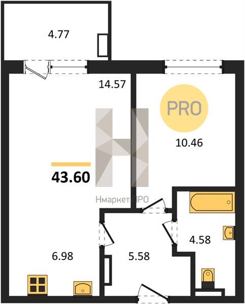 Квартира: 1 к 43,60 кв.м., 5 этаж в комплексе Балтым-Парк, 2 очередь, корп.18, сдача: 2кв. , этажей: 5, адрес Верхняя Пышма г., д. 18, Застройщик: ГК ЭТАЛОН.