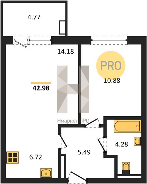 | Общая площадь: | 42.98 м2 |
