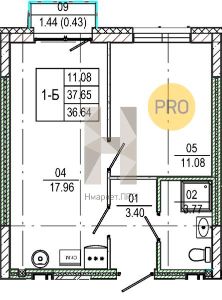 Квартира: 1 к 36,64 кв.м., 8 этаж в комплексе Progress Встречный, 2 очередь, корп.2, сдача: 3кв. , этажей: 23, адрес Екатеринбург г., Ветеринарная ул., , Застройщик: Прогресс.