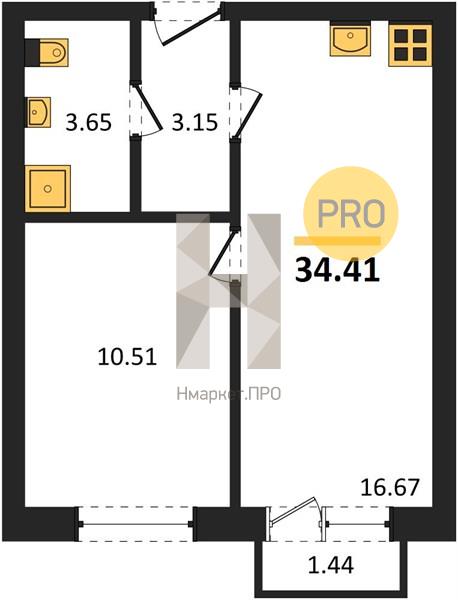 Квартира: 1 к 34,41 кв.м., 9 этаж в комплексе Progress Встречный, 2 очередь, корп.2, сдача: 3кв. , этажей: 23, адрес Екатеринбург г., Ветеринарная ул., , Застройщик: Прогресс.