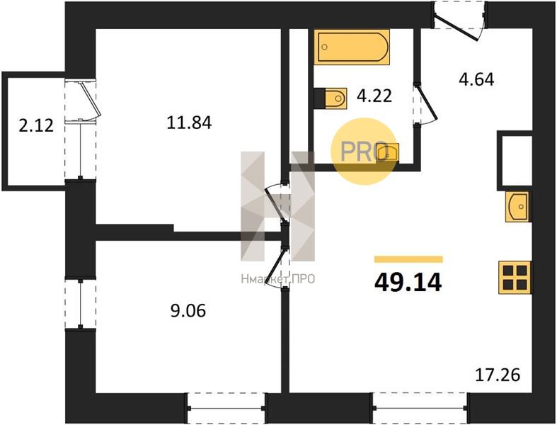 Квартира: 2 к 50,33 кв.м., 12 этаж в комплексе RAZUM на Малышева, 1 очередь, корп.1, сдача: 4кв. , этажей: 31, адрес Екатеринбург г., Вишнёвая ул., , Застройщик: РАЗУМ.