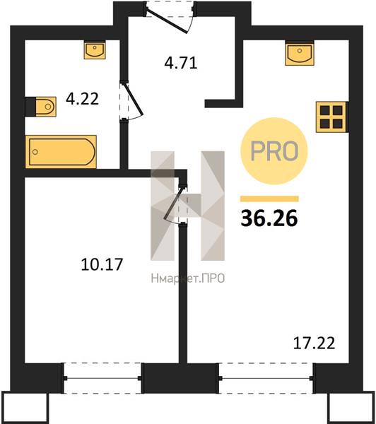 Квартира: 1 к 36,26 кв.м., 17 этаж в комплексе RAZUM на Малышева, 1 очередь, корп.1, сдача: 4кв. , этажей: 31, адрес Екатеринбург г., Вишнёвая ул., , Застройщик: РАЗУМ.