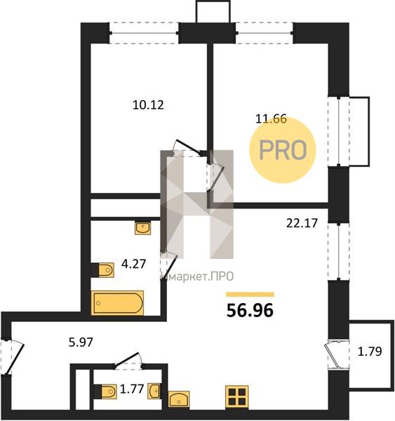 Квартира: 2 к 56,96 кв.м., 17 этаж в комплексе RAZUM на Малышева, 1 очередь, корп.1, сдача: 4кв. , этажей: 31, адрес Екатеринбург г., Вишнёвая ул., , Застройщик: РАЗУМ.