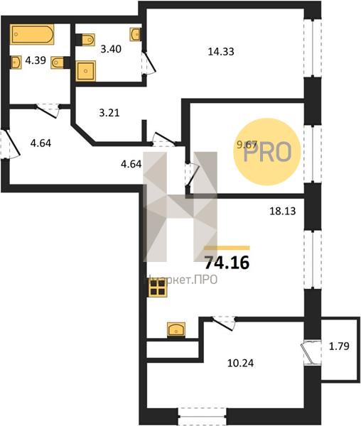 | Общая площадь: | 74.16 м2 |