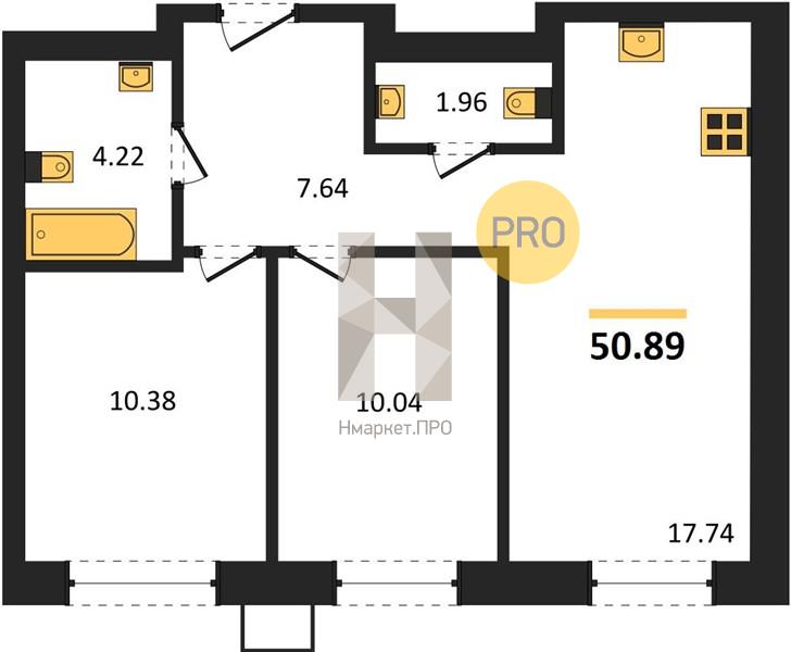 | Общая площадь: | 50.89 м2 |