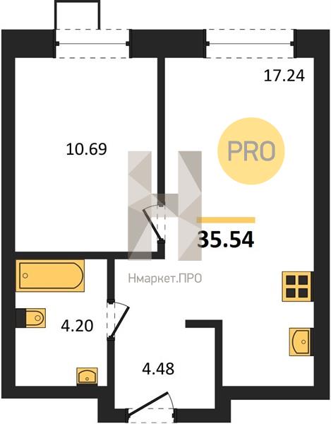 Квартира: 1 к 35,54 кв.м., 27 этаж в комплексе RAZUM на Малышева, 1 очередь, корп.1, сдача: 4кв. , этажей: 31, адрес Екатеринбург г., Вишнёвая ул., , Застройщик: РАЗУМ.