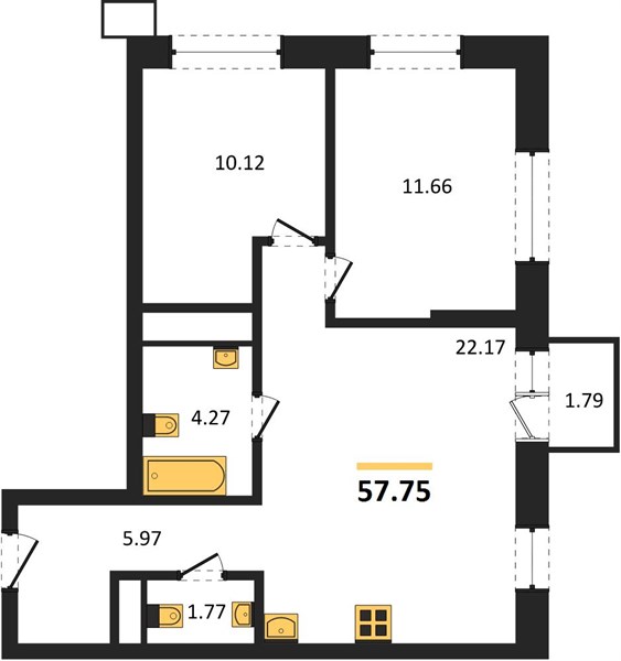Квартира: 2 к 58,28 кв.м., 6 этаж в комплексе RAZUM на Малышева, 1 очередь, корп.1, сдача: 4кв. , этажей: 31, адрес Екатеринбург г., Вишнёвая ул., , Застройщик: РАЗУМ.