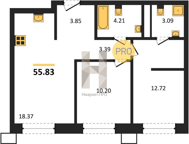 Квартира: 2 к 56,22 кв.м., 8 этаж в комплексе RAZUM на Малышева, 1 очередь, корп.1, сдача: 4кв. , этажей: 31, адрес Екатеринбург г., Вишнёвая ул., , Застройщик: РАЗУМ.
