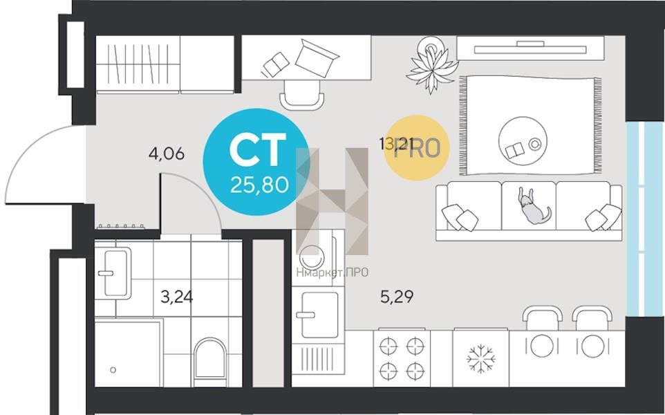 | Общая площадь: | 25.80 м2 |