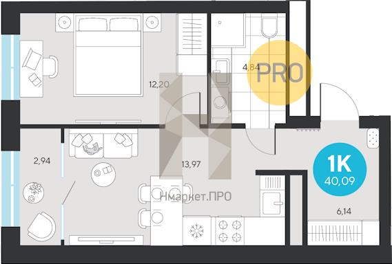 Квартира: 1 к 40,09 кв.м., 2 этаж в комплексе Эхо леса, 1 очередь, корп.1, сдача: 1кв. , этажей: 22, адрес Екатеринбург г., Владимира Букина ул., , Застройщик: ГК Север.