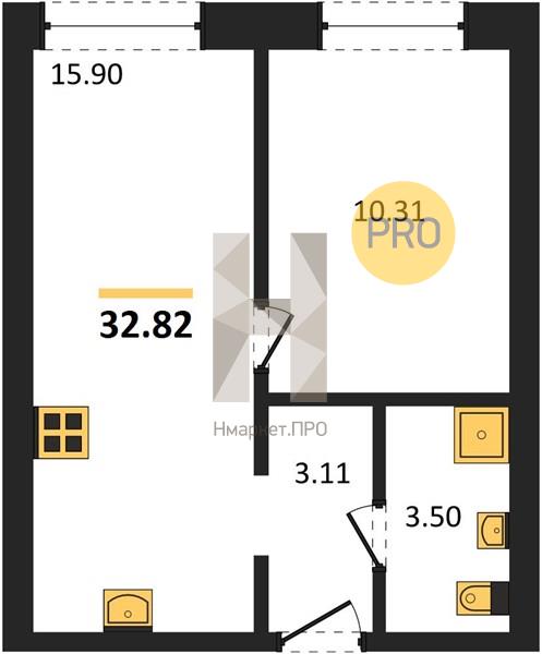 Квартира: 1 к 32,82 кв.м., 16 этаж в комплексе Эхо леса, 1 очередь, корп.1, сдача: 1кв. , этажей: 22, адрес Екатеринбург г., Владимира Букина ул., , Застройщик: ГК Север.